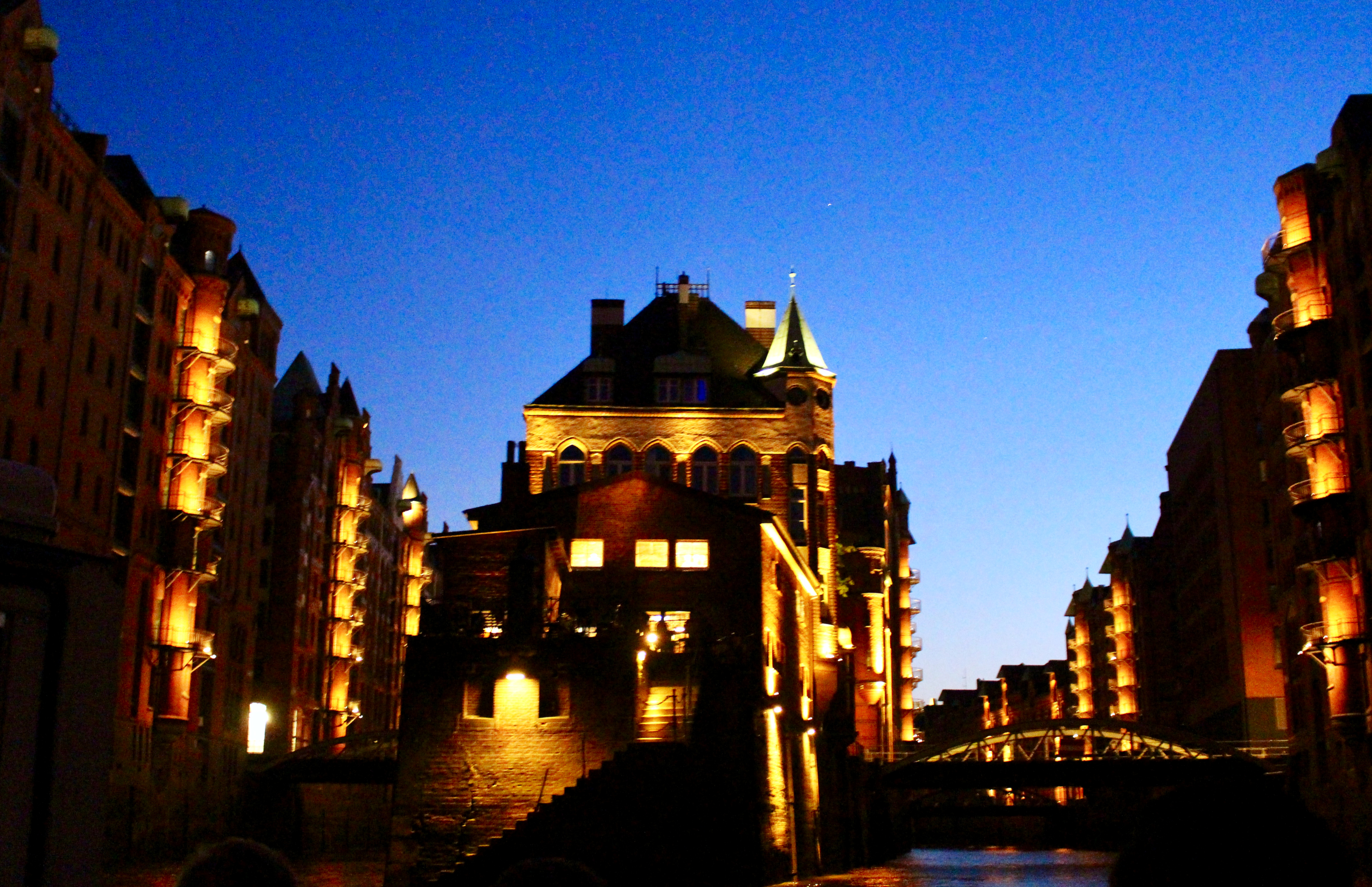 I took this photo during an evening boat tour of Hamburg at Easter 2019.